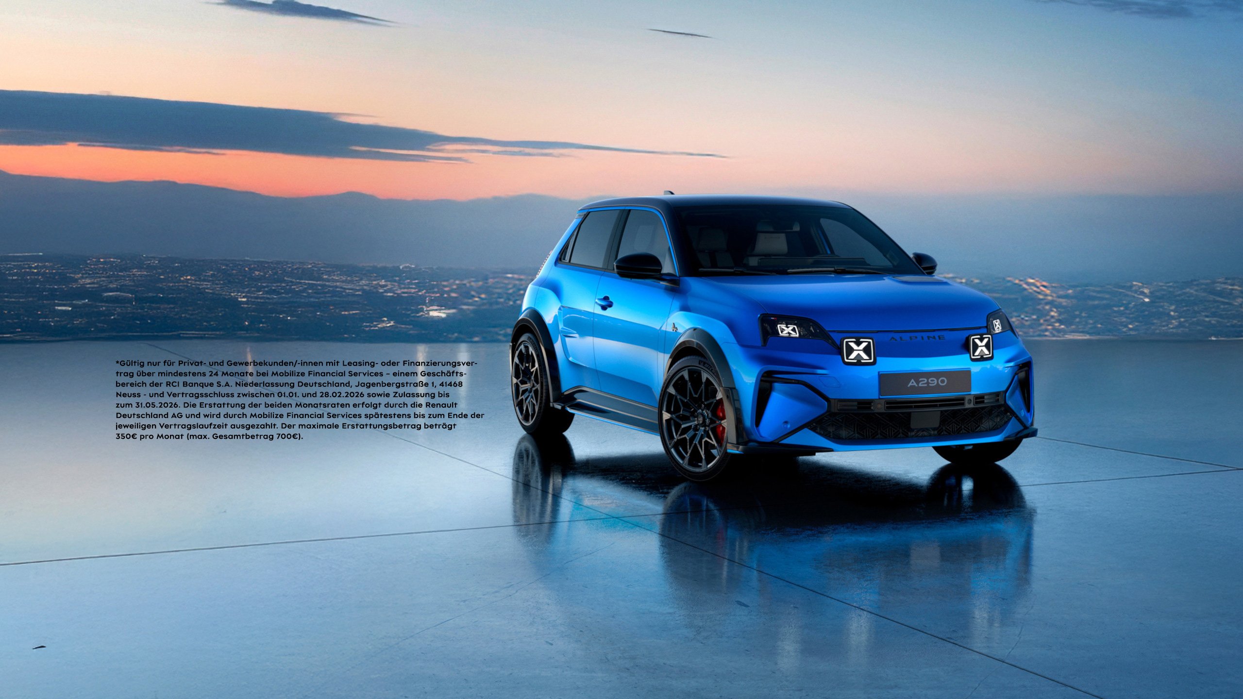 Alpine A290 GT, GT Premium (52kWH Batterie): Stromverbrauch kombiniert (kWh/100 km): 15,8; CO2-Emissionen kombiniert (g/km): 0; CO2-Klasse: A